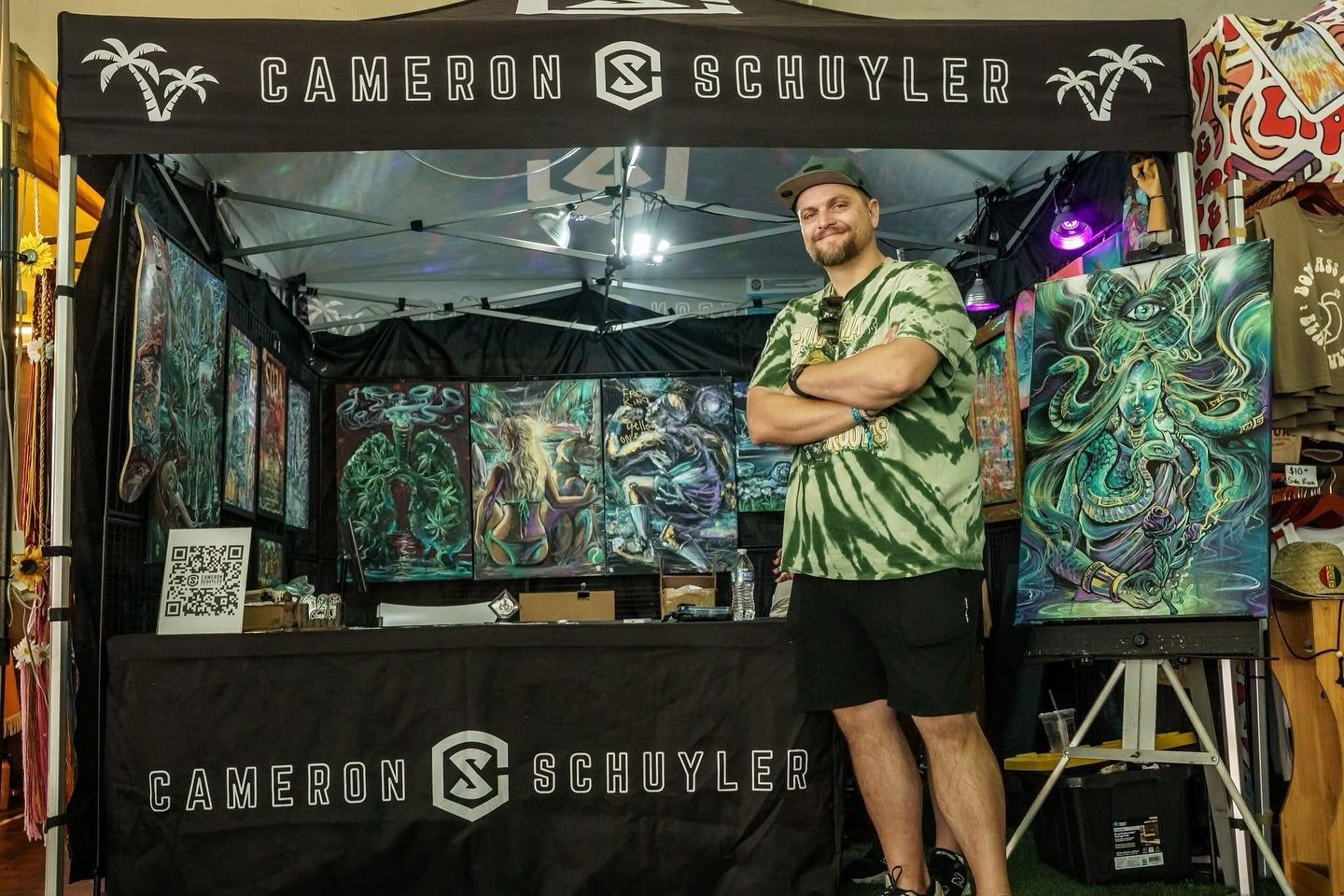 Cameron mesmerizes crowds with his live painting prowess, infusing stages with dynamic energy and captivating visuals. Teaming up with his favorite musicians, he transforms music into breathtaking visual stories, constantly pushing the boundaries of artistic innovation. Fueled by unyielding passion and boundless creativity, Cameron's work epitomizes the transformative magic of artistic expression.